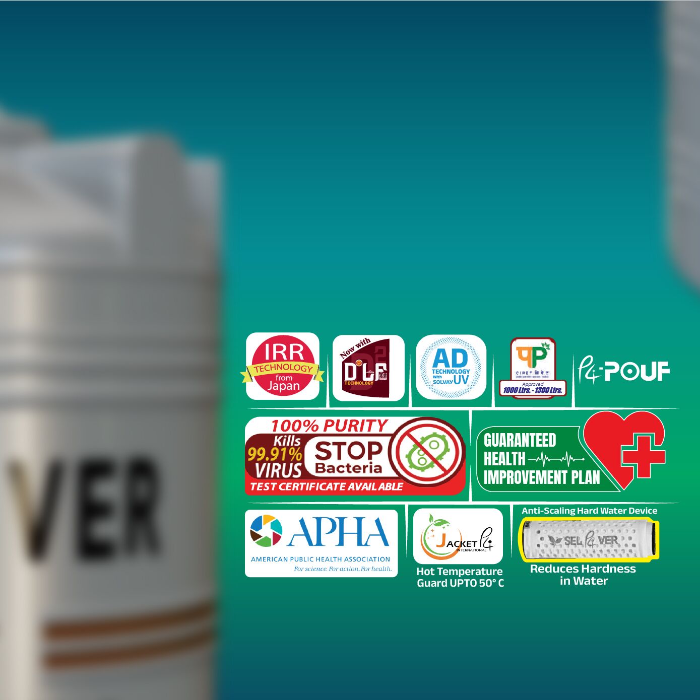 Every Silver P4 tank comes with a complimentary Jacket-P4 (heat-protection outer layer) and a hardwater softener device to improve water quality and maintain cool temperature.